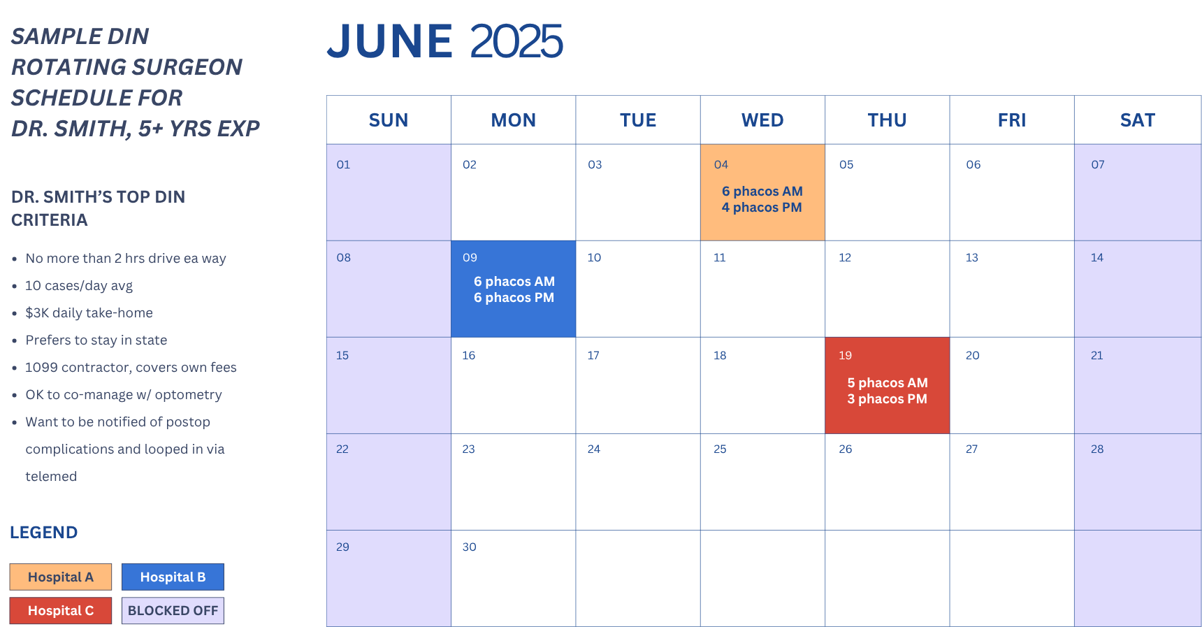 Surgeons are in high demand, yet our practice options remain limited—rigid full-time roles, intermittent per diem assignments, or unstable locums work. Doctors in Network (DIN) offers a flexible and transparent alternative designed around you.