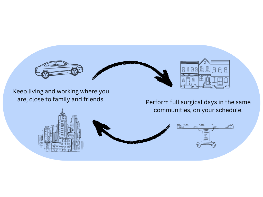 We start by understanding your goals—whether that’s case mix, geography, schedule, or patient volume. Then we match you with hospital partners that align. You stay focused on high-impact surgical work while we manage the logistics.